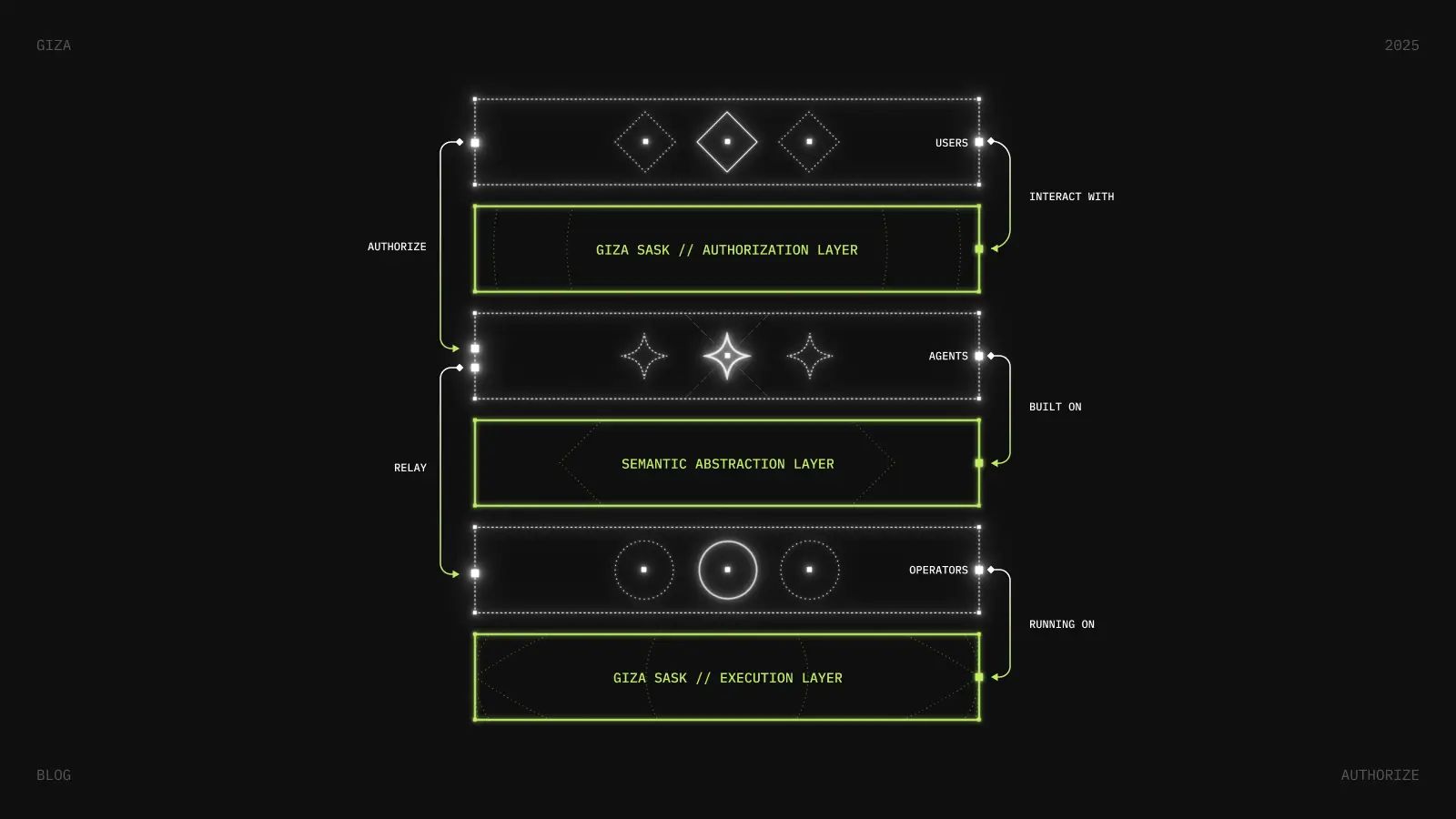 The architecture runs on three layers: a semantic layer standardizes protocol logic, an authorization layer with smart accounts and session keys for non-custodial delegation, and a decentralized execution layer secured by EigenLayer.