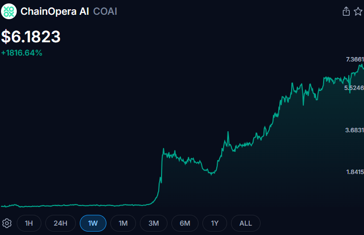 ChainOperaās $COAI surged over 2000% this week amid new listings and hype from the AMDāOpenAI chip deal.