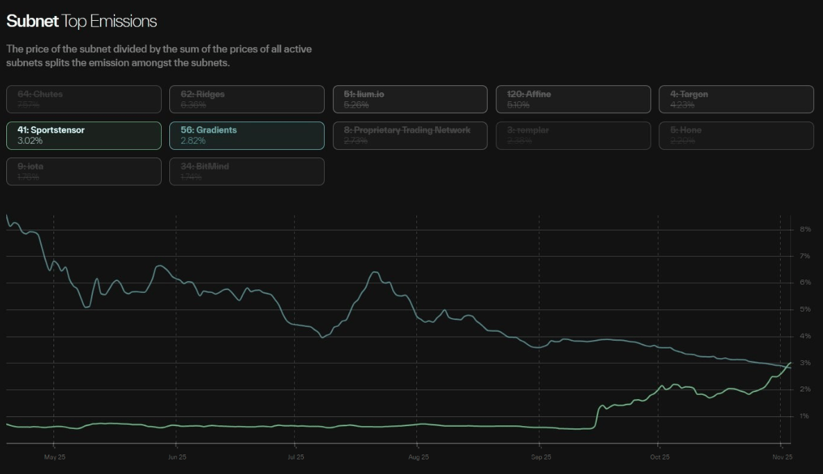 Structural signal: Bittensor’s emissions system is evolving into a kind of proof-of-utility model, where economic gravity follows useful work instead of market speculation.